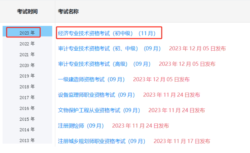 第三步:登录成功。选择考试年份2023年和“经济专业技术资格考试(初中级)(11月) ”,点击进入即可查询成绩。