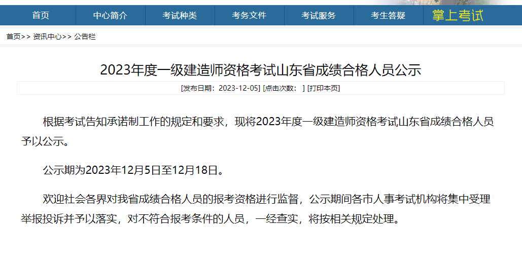2023年度一级建造师资格考试山东省成绩合格人员公示