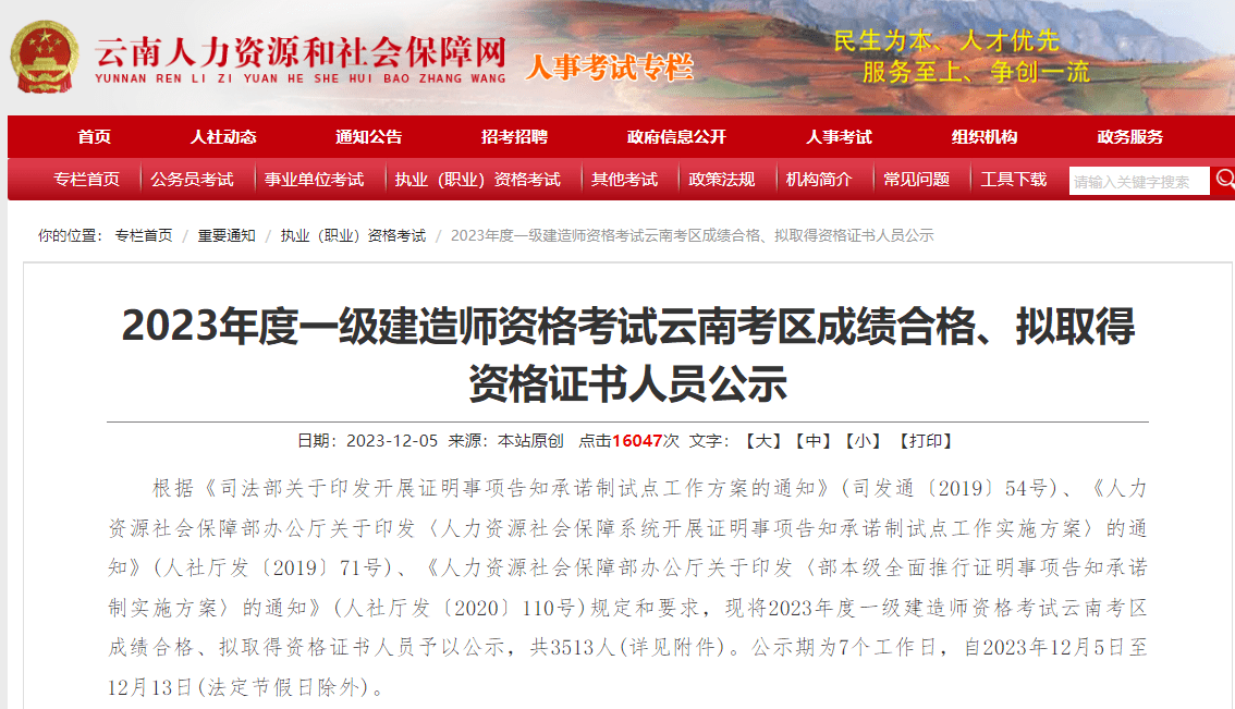 【平地起直聘讯12月07日讯】中国人事考试网一建成绩查询通知刚发布,合格人员名单和领证通知紧接而来,真的进展迅猛!