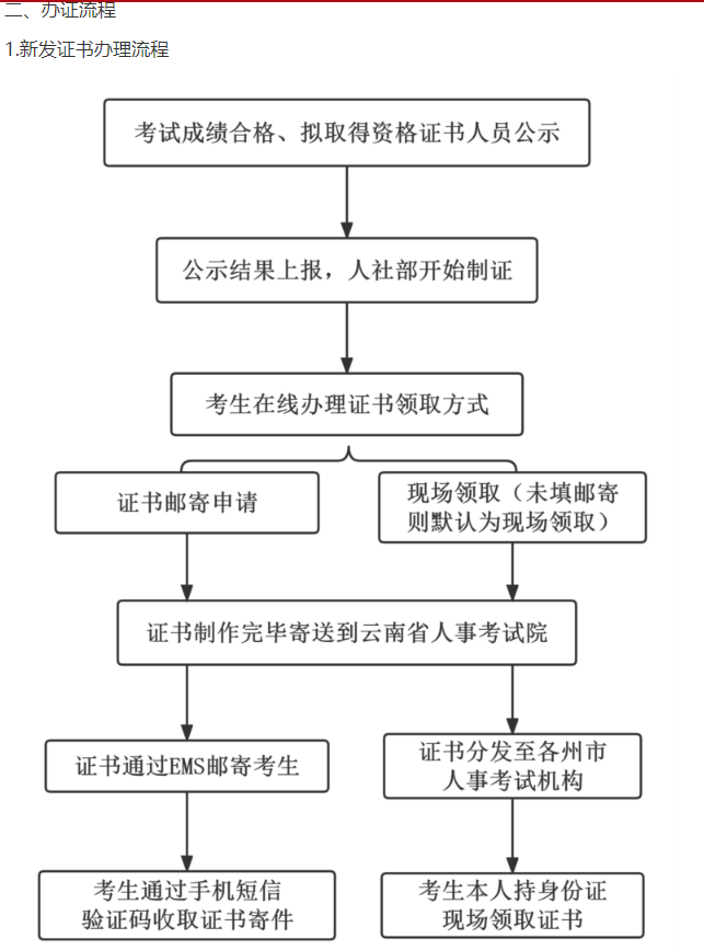其他未申请证书直邮、报考条件在线核查状态为“发放证书”人员的证书,由报名所在地人事考试机构依申请邮寄或现场发放。