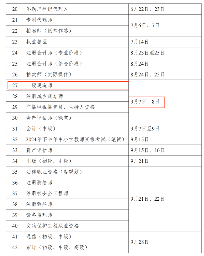 为做好专业技术人员职业资格考试规划和管理工作,便于广大专业技术人员参加职业资格考试,经商有关部门同意,现就2024年度专业技术人员职业资格考试工作计划及有关事项通知如下: