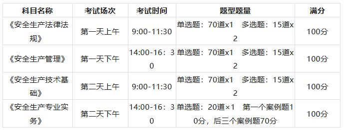 中级注册安全工程师考试各科目题型及分值设置如下: